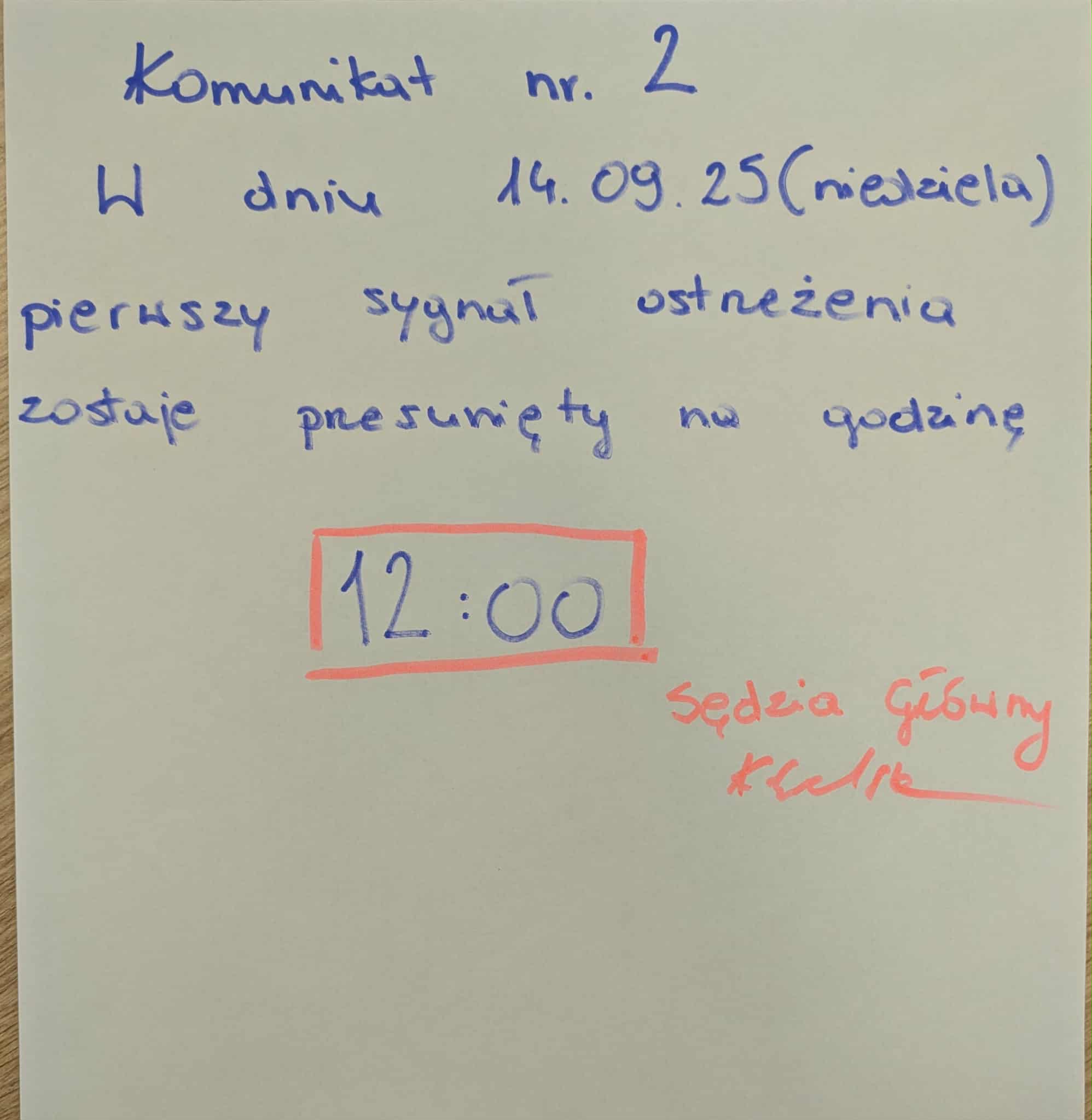 Zmiana godziny ostrzeżenia w dn. 14.09.2025. 2